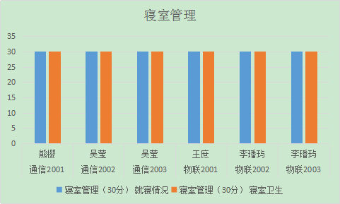 从图表可以看出,通信1902班、物联1902班和城轨1902班的寝室管理有扣分现象,特别是城轨1902班的扣分较多,由此可以看出寝室就寝情况和卫生情况存在较大问题。希望辅导员和各寝室的寝室长加强管理,督促到位。