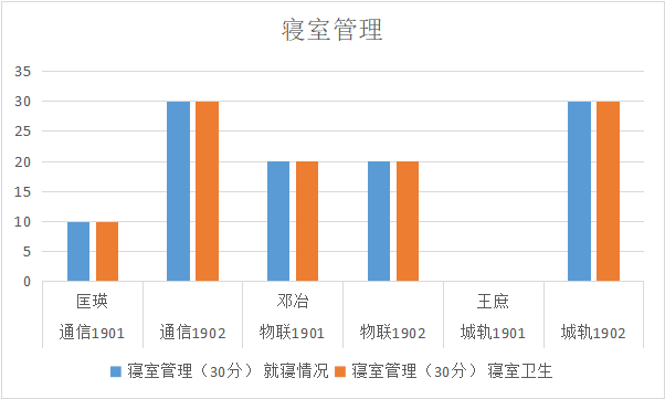 寝室管理情况,通信2002班、通信1901班、物联1901班、物联1902班扣分情况有待提高,其他班级表现良好。希望各班辅导员和各班寝室长加强管理,督促到位。