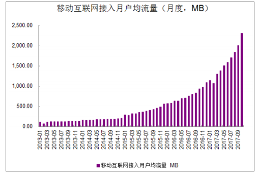 国人均移动流量爆发式增长(单位:MB)