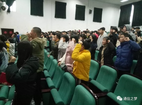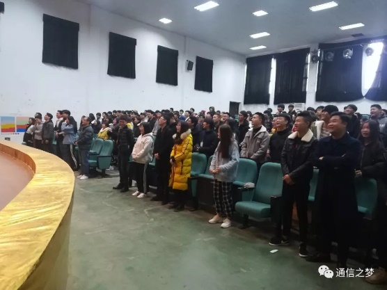 今天下午三点整,通信工程公司第五届团学大会在报告厅举行,参加本次大会的有易拥奇主任和全体团学会成员。在主持人的带领下,全体同学齐唱《五月的花海》,大会在一阵歌声中拉开帷幕。
