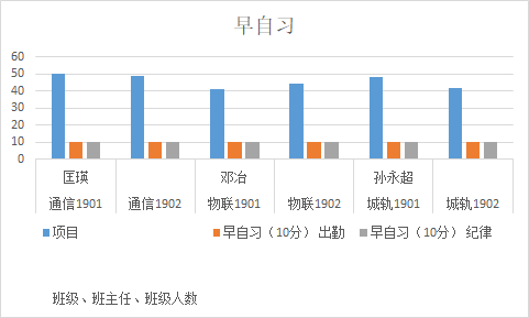 从表中可以看出,早自习通信2001班、通信2002班、通信2003班、物联2003班,希望辅导员及各班班长加强管理。